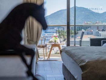 отличное месторасположение! до моря - 5,4,3,2,1 секунды бегом)) Мы с женой забронировали номер с боковым видом на море. Но (!) при заселении гостиница любезно и (!) бесплатно разместила в номере с прямым видом на море - это же сказка! Вечером посидеть на балконе под шум прибоя или утром открыть глаза и увидеть синеву моря)) Порадовала 20% скидка на меню ресторана при отеле. Сам отель очень даже симпатичный, стильный. собственный пляж при отеле - рулит!
