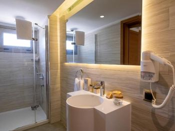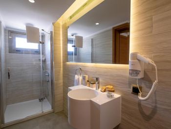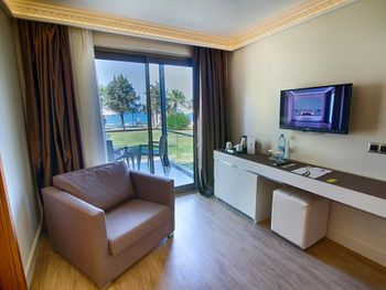 В каждом номере установлен кондиционер и мини-бар, а также обустроен балкон и гостиный уголок. Собственная ванная комната оборудована душем и укомплектована феном. Из окон открывается вид на сад и море.