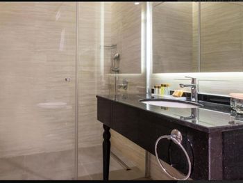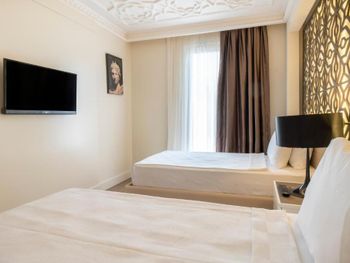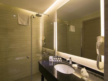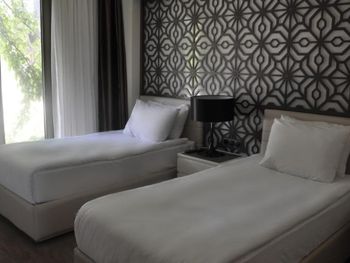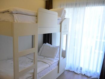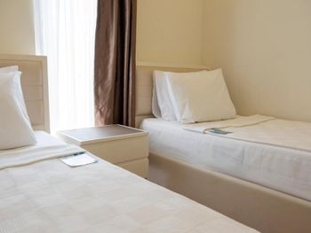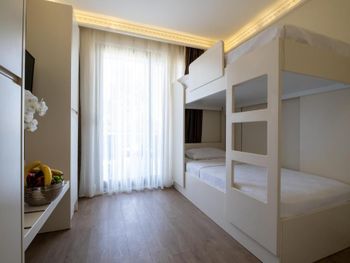 Отелю всего 2 года, но он уже начинает сыпаться. Нам достался номер с перекошенной дверью с москитной сеткой на балконе и с неработающими лампами в ванной и коридоре. Как готовили номер - для меня загадка. Мы брали 3х местный номер. Дополнительная кровать имела крайне странный вид, у неё не хватало заглушек на металическом основании, те что оказались в наличии были все погрызены. Подобную кровать нужно выбрасывать , а не гостям предлагать. Номера убирались из рук вон плохо, полы оставались грязными как в комнате, так и в ванной комнате (после хождения босиком ноги окрашивались в черный цвет), про балкон я даже не говорю. Если вы отдыхаете с маленьким ребёнком, который только начинает ходить вряд ли вы пустите его играть на пол. Честно говоря, сталкиваюсь с таким в Турции впервые. Так же удивило наполнение номеров. В комнате отсутствовало обычное мусорное ведро, даже самый мелкий мусор приходилось бегать выбрасывать в ванную. После одного подгузника в ведро уже ничего не входило. В номере не было геля для душа, тапочек ( по словам сотрудников все закончилось, и ожидалась поставка), про халаты я даже не говорю. К чести клининг персонала шампунь и мыло обновлялись постоянно и в больших количествах. В отеле очень слабый вай-фай, в номерах он совсем не работал и это в 21м веке. Бороздить просторы интернета можно было только в лобби.