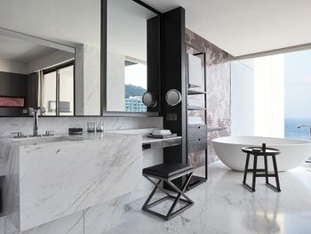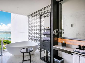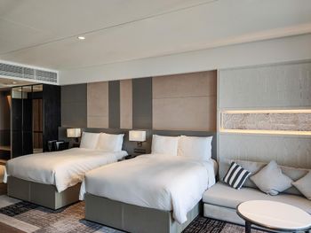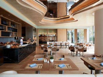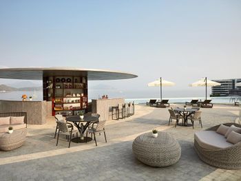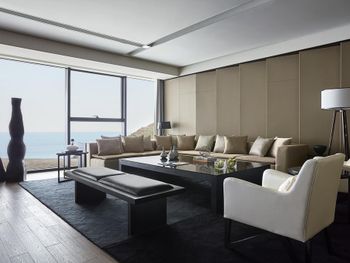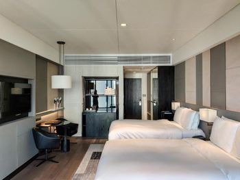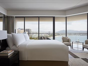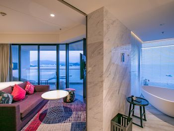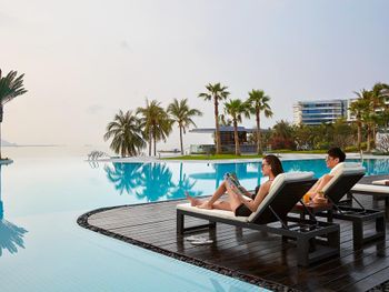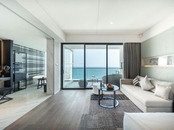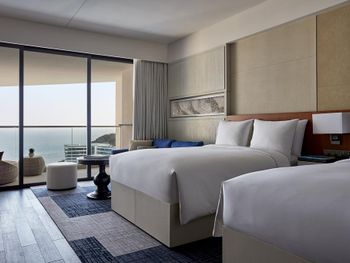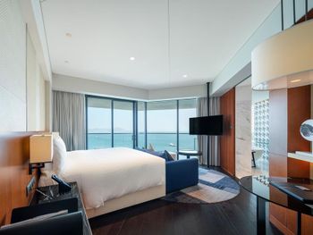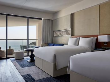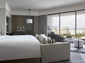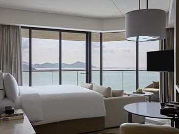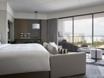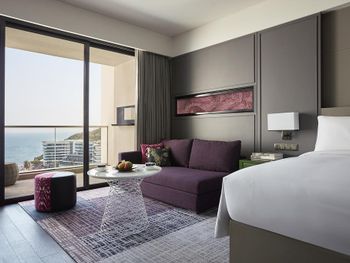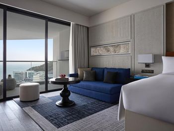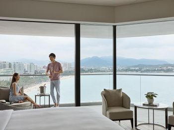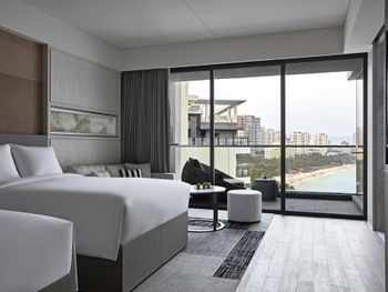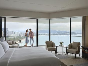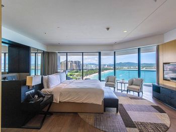 Жили в отеле 12 ночей в январе 2025 года. В отеле живет куча богатых китайцев, вся парковка в Роллс-ройсах и Феррари. Территория отеля общая с Мариоттом. Номер огромный, почти 100 кв. м. Номер очень комфортный: отдельная гостиная с обеденным столом, в спальне очень широкая удобная кровать с отличными подушками. На террасе есть мягкая лежанка на двоих. С террасы отличный вид на бухту Дадунхай. В номере два туалета, большая ванна и отдельный душ. Если бы в номер доставляли еду, то можно и несколько дней не выходить. К сожалению, доставку еды в номер отель не предоставляет. Завтрак шведский стол, не очень разнообразный и не особо вкусный. В отеле два бассейна - на 3м этаже рядом со спортзалом (зал очень маленький для такого большого и недешевого отеля) и на территории есть еще один бассейн с пляжным баром.