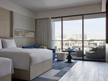 Лучший отель в котором я был за 40+ лет! Стандартный номер огромных размеров, балкон с полноценным диваном, ванная комната шикарная - в ней и душевая и ванная. Вид с балкона - бомба (у нас был 21 этаж) Завтраки до 13.00, еще и с собой можно взять! Уборку в номере умудрялись делать за 30 минут, пока мы ходили на завтрак. Территория общая с отелем Мариотт, можно ходить в любой бассейн. Вечером у бассейна очень приятная лаунж музыка. Самые лучшие впечатления от отеля, однозначно рекоменд.
