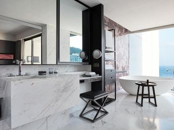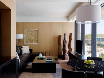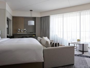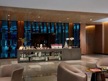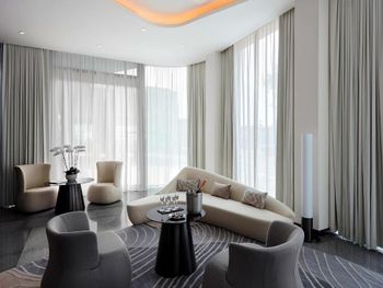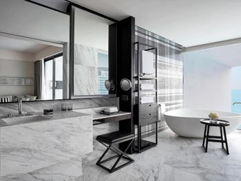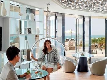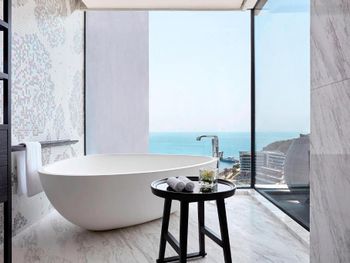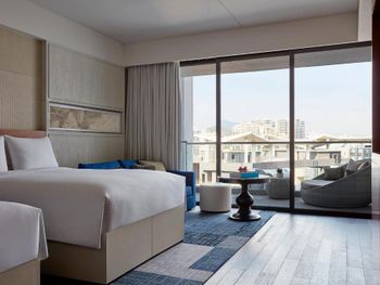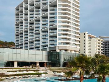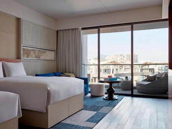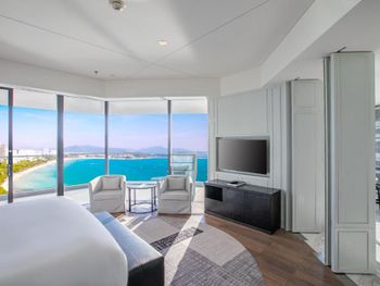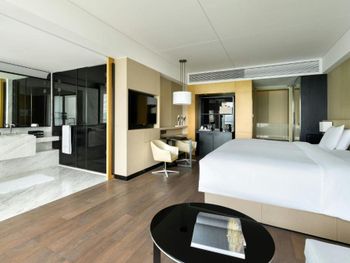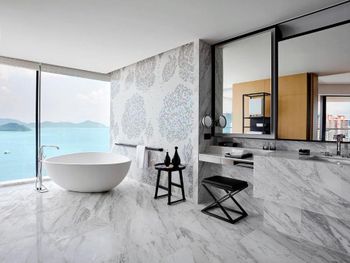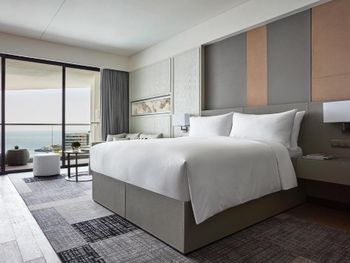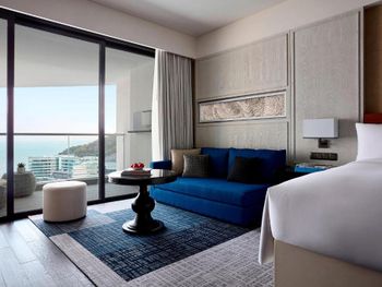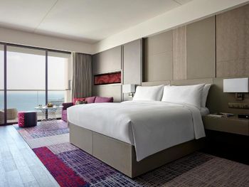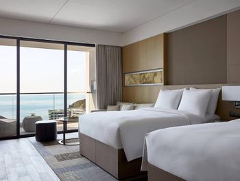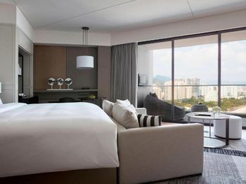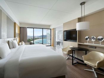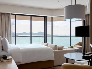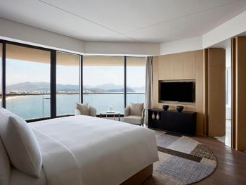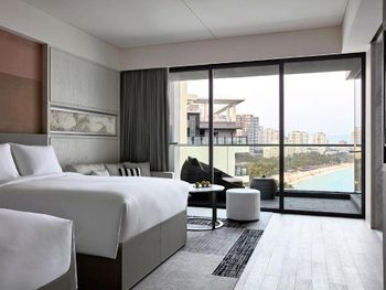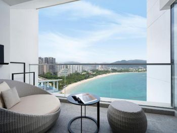 Жили в отеле 12 ночей в январе 2025 года. В отеле живет куча богатых китайцев, вся парковка в Роллс-ройсах и Феррари. Территория отеля общая с Мариоттом. Номер огромный, почти 100 кв. м. Номер очень комфортный: отдельная гостиная с обеденным столом, в спальне очень широкая удобная кровать с отличными подушками. На террасе есть мягкая лежанка на двоих. С террасы отличный вид на бухту Дадунхай. В номере два туалета, большая ванна и отдельный душ. Если бы в номер доставляли еду, то можно и несколько дней не выходить. К сожалению, доставку еды в номер отель не предоставляет. Завтрак шведский стол, не очень разнообразный и не особо вкусный. В отеле два бассейна - на 3м этаже рядом со спортзалом (зал очень маленький для такого большого и недешевого отеля) и на территории есть еще один бассейн с пляжным баром.