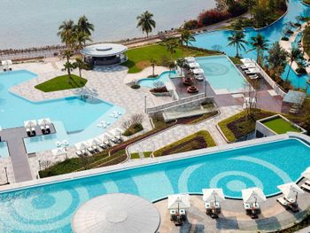 Понравилось всё! Расположение отеля немного в стороне от шумной улицы, локация удобная. Номер был с видом на море, очень красивый вид. Номер просторный, стильный, всё на 5 звезд, убирались каждый день и самое важное, качественно это делали. Завтраки разнообразные, выбор богатый, от традиционных, где лапшу варят при вас до европейских. На ресепшене персонал помогал со всем, от вызова такси и другими рядовыми вопросами и до вызова детского паровозика что бы тот покатал ребенка 🙂 это было очень сильно) Территория большая, красивая, ухоженная, с 2-мя бассейнами, один из них на 3-м этаже. У бассейна есть бар, с 12 часов примерно играли диджеи, музыка приятная, к вечеру развлекательные программы.