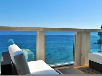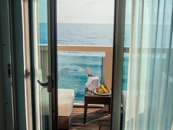 Нам выдали номер с огроменной террасой и за террасой аж целое море. Комната огромная. Ванная комната потрясная. За стеной всю ночь раздавались чьи-то впечатляющие стоны и шум моря. С утра стоны сменились боем колоколов. Курортно. Благодатно.
