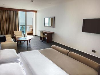 Бронировала double sea view . Погоняли по номерам. Хотя гостиница стояла пустая. Пока я настойчиво не потребовал дать то, что я заказала. Очень не хватало чайника и чайных принадлежностей - для уровня гостиницы просто должно быть! Все время был устойчивый пыльный налёт в номере. Странно. Пыталась сама протирать- снова пыль.диваны двигать не стала))))