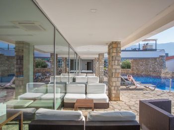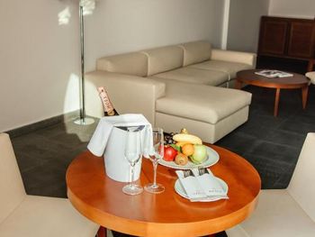 Грязный, обгаженный птицами забор на террасе. Поселение в номер не соответствующий заказанному без предупреждения. Отсутствие влажной уборки в номере, пол был грязный. Отсутствие свободных лежаков, нужно идти с утра класть полотенце, пока кто то этого не сделал раньше. Очень холодная вода в бассейне. В аперитив баре можно было минут пятнадцать просидеть пока хоть кто то появится на баре. Вода в номере платная - 3 евро бутылочка, если не ошибаюсь, 0,5. В магазине рядом 5литровая 0,99 евроцентов. Первый раз встречаю в курортном отеле платную воду.