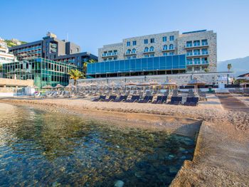Отличное месторасположение, собственный пляж, бассейн с шикарным видом прямо нависает над морем. Завтраки и ужины у нас были включены в стоимость. Уютный балкончик с потрясающим видом на море и старый город. Хамам, сауна, спорт зал и крытый бассейн, собственная бесплатная парковка. Все самое главное очень близко: поесть, искупаться, погулять, пофотаться, посмотреть на яхты - в радиусе 500 метров от отеля. Старый город так и вообще за завтраком из ресторана видно.