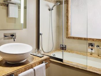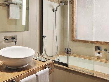 Номер прекрасный, правда немного всё старое, вода из ванной, из гигиенического душа на пол попадает - лужи. При заселении нам положили один халат и один комплект принадлежностей для ванны. Обратили внимание на это уборщика номеров - попросили принести второй. Второй комплект для ванны принес, халат так и не дождались. Но это все - ничего не значащие мелочи. В целом - все было ОК!