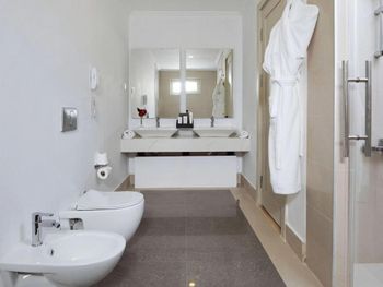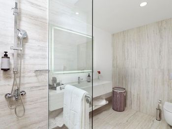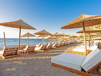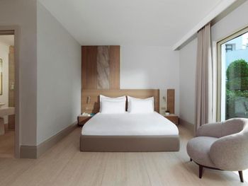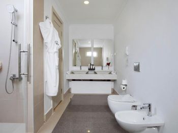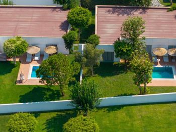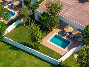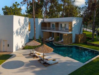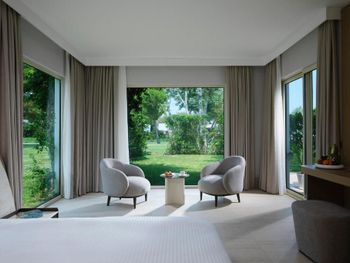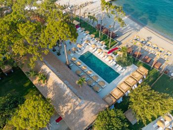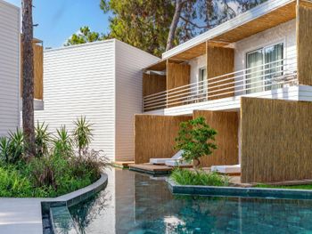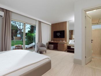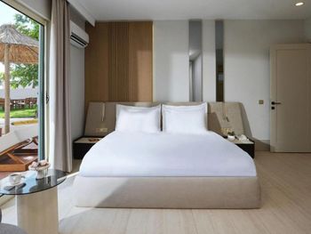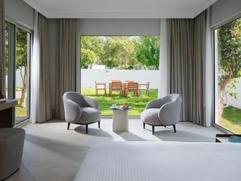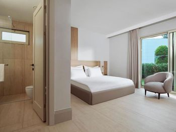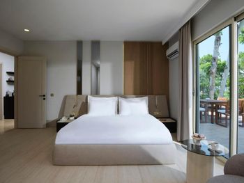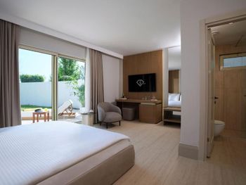 Accommodation is provided by luxurious rooms equipped with modern furniture. They all include air conditioning, free Wi-Fi and a balcony with sea, garden or pool views. The elegant villas offer private pools.