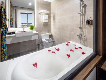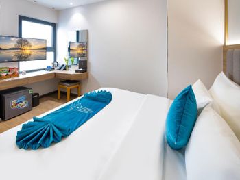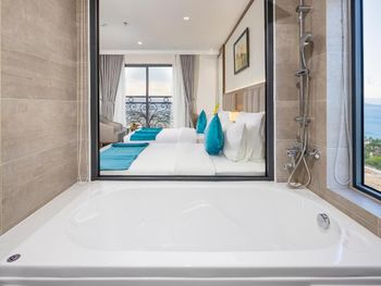 Чистый номер, прекрасный вид на море, все туалетные принадлежности есть. Полотенца для пляжа выдают. Ресепшн очень отзывчивые, помогли и с такси, и с вопросами о городе. Охранники парковки вежливые, помогают парковать байк. Есть бассейн на крыше, вкусные завтраки. Хорошая звукоизоляция с улицы при закрытых окнах, кондиционер удобный и работает хорошо.