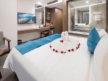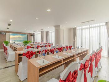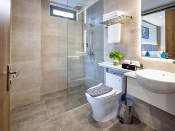 Чистый отель. До пляжа 5 минут пешком. Своих лежаков нет. Полотенца выдают под роспись на ресепшен. Завтраки нормальные, как во всех отелях Вьетнама.