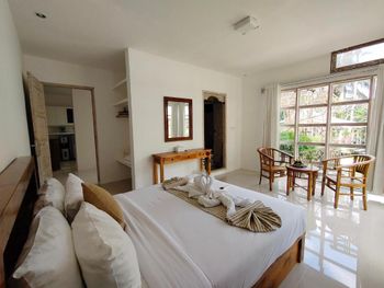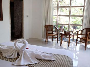 Мы бронировали номер делюкс. Он большой, с отдельной мини-кухней. Но прибыв в отель вечером нам дали крохотный номер без кухни и с одной кроватью. На наши вопросы о том, почему нам дали не тот номер, который мы бронировали, сказали, что отдали НАШ номер другими людям, которые приехали с ребенком. Им сделали апгрейд и отдали наш номер!! Я всегда тщательно подхожу к вопросу выбора отеля. И я бронировала именно этот номер, почему я должна соглашаться на отвратительный другой номер, который очень сильно отличается. При чем персонал отказался возвращать часть денег или селить нас в номер - бунгало. Сначала, когда мы попросили поселить нас в бунгало, раз вышла такая ситуация, они сказали доплатить за него. Но потом когда мы сказали, что это все произошло по их вине, сказали, что там не работает электричество. Персоналу было все равно. Они даже не извинились. Но мы приехали поздно вечером и безумно уставшие, поэтому остались там. В самом номере, который нам дали, ужасно грязно. Шторы с огромными пятнами и воняют. В ванной грибок и плесень. А еще там было 2 лягушки. Постельное белье с пятнами, как и полотенца. Не рекомендую вам этот отель, если не хотите, чтобы вы бронировали одно, а получили другое.