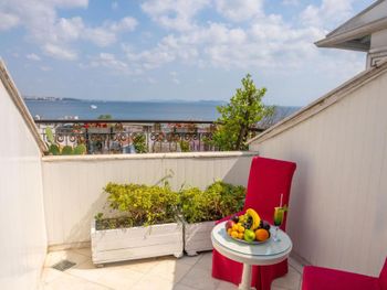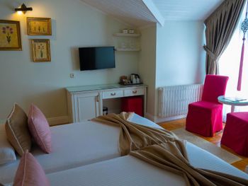 Фото улучшенного номера не соответствуют действительности. В жизни оказалось, что улучшенный номер отсутствует в отеле в принципе и нам достался стандартный номер. Мебель уже изношена, комната вся требует косметического ремонта. Ванная комната достаточно тесная и маленькая. Тусовка в ресторане на верхнем этаже продолжалась ежедневно до 00.00, но нам это не мешало. Звукоизоляция отсутствует. Полотенца за 3 дня ни разу не менялись, но ежедневная уборка производилась. Считаю, что у данного отеля очень завышена цена. Да, вид на море есть, но так же имеется вид на разрушенные постройки.