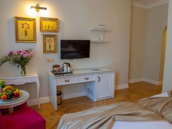 Понравилось, что бесплатно поменяли номер по нашей просьбе, он был не намного чище, зато больше и выше классом, и раковина целая. Уборка была каждый день, есть фен, чайник, холодильник и дополнительное зеркальце Невысокая цена Очень хорошее расположение, милый район, красивый фасад отеля, напротив есть химчистка PS приятная мелочь: много стаканов (для вина, для чая, для зубных щёток), так что будет куда налить вашим гостям