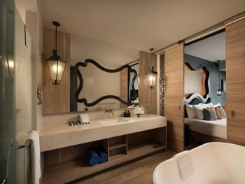 отель не соответствует 5 звездам совсем! Это 3 звезды максимум, не покупайтесь на симпатичные картинки номеров. Да, номера довольно стильные, удобные, с хорошими балконами. Но на этом все хорошее заканчивается. Отель не пользуется услугами нормальных профессиональных прачечных или пользуется, но не парится качеством стирки: полотенца и постельное белье вместо белого - откровенно застиранного серого цвета, моей подруге в номер вообще принесли полотенце с ржавыми разводами. Самое УЖАСНОЕ в этом отеле - это их кровати. Если вас воспитывали спать на гвоздях, возможно, вам и будет комфортно. Но обычному незакаленному Спартой человеку спать на их кроватях НЕВОЗМОЖНО! Все тело отваливается. Отель 5 звезд - это прежде всего хороший сон. Но этот отель решил на вашем сне сэкономить и поставил кровати без какой-либо ортопедии или заботе о клиенте. Самые жесткие в мире матрасы