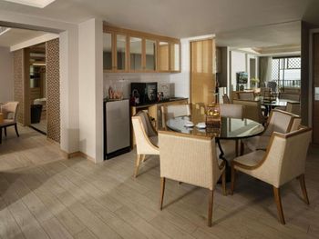 Да, номер просторный и дизайн неплохой, но очень грязно и учитывая, что отелю всего пару лет, номера могли бы выглядеть лучше. В общем уборка страдает на всей территории. Бассейн грязный, спортивный зал это нечто... там лежит ковровое покрытие!!! Зачем??? Оно воняет ужасно, в зал не зайти, затхлый запах от ковра. Как люди должны заниматься??? Всегда бронирую абсолютно все отели с наличием спортивного зала, за шесть дней прибывания ни разу не занимались. Завтрак- очень плохо. Выбор скуднее не бывает. Ветчины два вида, сыра один вид, аж смешно. Соки- химия, выпечка- половина с полусырым тестом. Кофе тоже раз на раз не приходится, иногда приносили неплохой, иногда просто катастрофа. Ну почему не сделать вкусную еду? Wifi- ужас. Не могли даже в социальных сетях сидеть, не говоря уже о том, чтобы смотреть фильмы или видео.