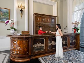 Заезжали в день рождение, к сожалению, никакого комплемента от отеля не было. Так же персонал на стойке регистрации был не приветлив, не разъяснили информацию по отелю. Мы останавливались на 2 ночи, за это время к нам не заходили убираться и дополнить бар. В ресторане персонал был более приятен и дружелюбен, им спасибо)