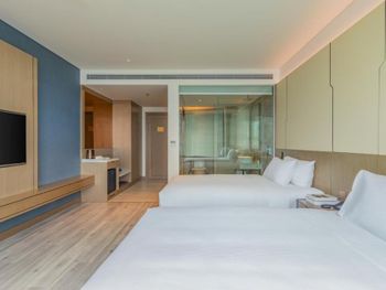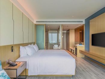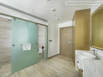 Первая береговая, вид, бассейн с видом на побережье, ресепшен, вежливый персонал, всегда стараются помочь, местоположение хорошое, жалко 5 звезд и только завтрак входит, еда заточена на Китай, Вьетнам, Корея и Япония. Кто с СНГ немногого будет голодно. Нас спасал на 25 этаже ресторан, там ели пиццу и салаты. Вокруг много кафешек но ранее сказал не на СНГ. Хороший отель, стоит приехать, главное не дорого.