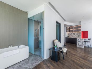 Вежливый персонал. Отличные завтраки. Панорамный вид из окна на море. Красивый интерьер в номере. Ресторан на крыше с вкусной едой.