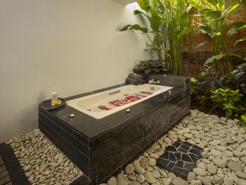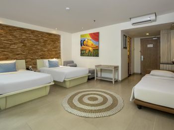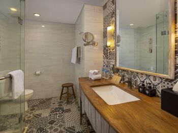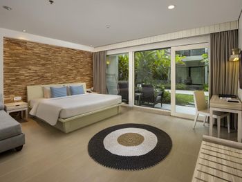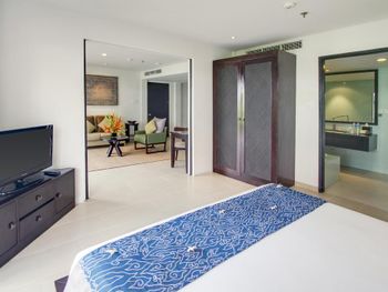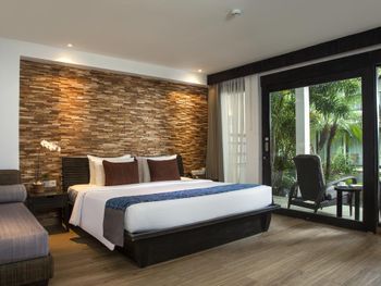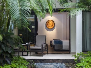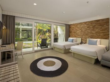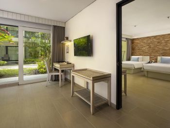 Rooms at Away Bali Legian Camakila Resort come with a private balcony overlooking the pool or garden. Each room has a flat-screen TV, a safety deposit box and a sofa bed. The attached bathroom has a bathtub and shower.
