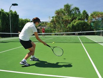 Guests can enjoy spectacular sunsets or swim in the coral waters. Rejuvenating spa treatments are offered at the spa while a fitness centre lets guests have a work out.