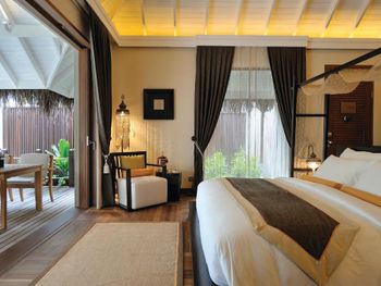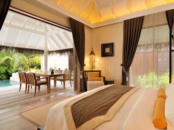 The villas offer stylish interiors, finished with Middle-Eastern and Maldivian design elements. Beach villas and suites feature a secluded private garden with pool and outdoor shower - just a few steps away from the beach. Over-water villas and suites offer amazing views over the open ocean and also have private pools and outdoor showers.
