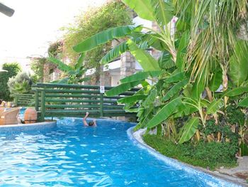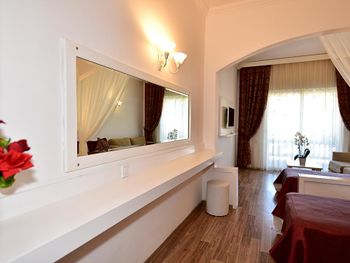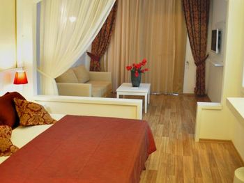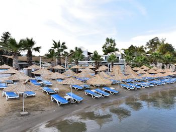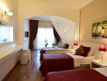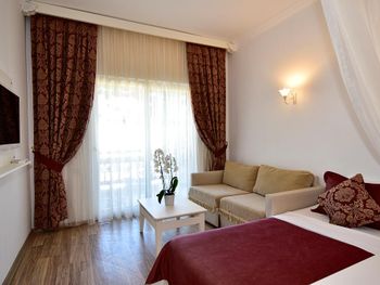 Мне понравилось , что данный отель имел собственный пляж. Пляж чистый, но небольшой. Мы брали "все включено" - питание очень хорошие, разнообразное, всегда можно выбрать что то новое. Ближе к вечеру давали мороженное. Бар бесплатный ( соки и пиво ) сколько захочешь. Номера уютные, у нас был на 3-м этаже с балконом. Убирают 1 раз в 3 дня. Персонал приветливый, ресепшен знает русский на отлично! 3 бассейна - все чистые. Расположение от города хорошие, на маршрутном автобусе до центра за 20 минут( без пробок), цена 10 лир - если наличными, 7 лир - если картой.