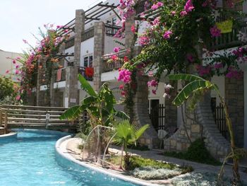 Красивая территория отеля, пляж в двух шагах, несколько баров, рядом остановка автобуса (до бодрума на автобусе около 15 мин). Отдельное спасибо прекрасным девушкам-близнецам на ресепшн за советы, помощь и позитив) )