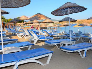 Ездили с подругой, бронировали 2 отдельные кровати. На второй день пребывания ночью, когда нас не было в номере, вынесли кровать. После получасового разбирательства нам кровать вернули. На следующий день история с кроватью повторилась. На ресепшне нам объяснили тем, что кроватей не хватает. Ужас какой-то, нас это вообще не должно волновать, мы заплатили за 2 отдельные кровати. На пляже и возле бассейнов катастрофически не хватало лежаков. В ресторане не работал кондиционер или он в принципе отсутствовал, все время было душно, шумно, мало света, в потемкам сидишь ужинаешь, очереди километровые.