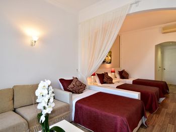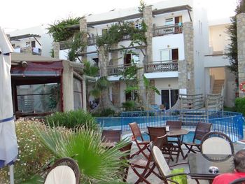 К услугам гостей этого отеля, расположенного в 150 метрах от пляжа на берегу Эгейского моря, большой открытый бассейн с растущими вокруг него пальмами. В номерах работает бесплатный Wi-Fi.