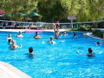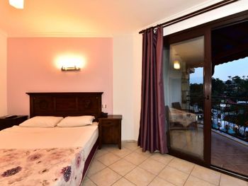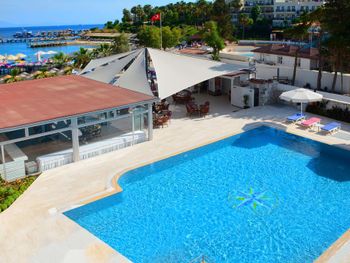 В этот отпуск в Бодруме это наш 3й отель, мы, посетили Мармарис, Фетхие и Олюдениз. Поэтому побывав в 8 отелях за отпуск, есть с чем сравнить. В данном отеле остановились на несколько дней проездом. Для полноценного отпуска ехать в этот отель я бы не советовала. Ниже напишу причины. Номерной фонд уставший, чистота тоже очень хромает. Садовника кажется вообще нет, потому что почти вся зелень, цветы просто в каком-то запустелом состоянии. У маленького бассейна возле пляжа вообще какой-то пустырь, даже травы толком нет. В целом везде чувствуется тотальная экономия. Пару примеров - 1) Холодильник с водой на зоне снек бара открывают только во время работы снек бара. В остальное время он заперт на замок! Основной бар у бассейна (где горки) работает до 23.00. То есть если вы захотели попить в 23.30 и вода закончилась у вас в номере, то ждите утра! Или купите сами в магазине за отелем. Обеспечение водой 24/7 в отеле "все включено", пусть даже бюджетного уровня должно быть by defalt, тем более в жару. 2)Примерно в 23.05 у основного бара освещение выключают, все идите все спать! По мне, так быть не должно. Люди еще сидят, кто-то допивает напитки, кто-то общается. Потом все сидят в полном мраке. Отель позиционирует себя как семейный-при этом для детей особо ничего нет! Детский уголок, площадка - все было в унылом состоянии, ребенок даже не подходил туда. Самое обидное -это мини диско. У отеля всего 1 аниматор мужчина (на все активности) - он ведет аква аэробику, вечерние шоу, детское мини диско, потом ночью еще вывозит туристов в клубы... что сказать мини диско велось для галочки - 3, 4 песенки ито не до конца. Когда как в других отелях этому уделяется 25-30 минут. Тут я засекала - 10 минут!!! при этом постоянно обрывали песни на середине. Аниматор говорил помощнику за ноутбуком - hadi, kapat (давай, вырубай). Хотя детей было много и все действительно ждали вечернего мини диско... такое отношение конечно не радует. Поэтому для семей с детьми не советую.