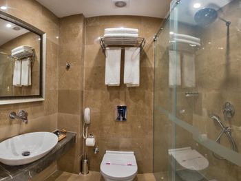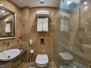 В Стамбуле похоже перебои с электричеством, при отключении включается шумный генератор и сбиваются Настройки кондиционера. Ребята, простите, но фруктовая тарелка тоже минус к сервису - навязчиво разбудили в 22:30 примерно в день после перелёта. Далеко от египетского базара и еминону. Рядом только дорогие не очень вкусные рестораны (как будто специально бухают сахара и соли) С бассейном системы не поняла. Не сказала бы, что знание русского языка помогает в понимании, запасайтесь английским или турецким :)Для минус 6 расположение ванны было прохладным - не хотелось из-за холода мыться. Завтрак... подозреваю что для Турции слабоват, но лучше чем в Европе в тройке по туру. Сокомашина иногда бьет током