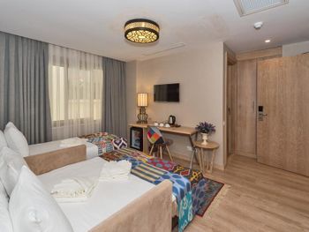 Начать стоит сразу с ресепшн, парень вполне хорошо понимает русский язык, рассказал, что учит его с помощью приложения. Его гостеприимство зашкаливает, он продержал нас минут 30 у стойки, хотел пообщаться и рассказывал про себя, про Отель, ближайшие рестораны и достопримечательности. Бесплатно повысил класс номера с эконом до стандарта ссылаясь на то, что в экономе нам не понравится, там маленькие окна и вот Вам стандарт - приятно, спасибо! Завтрак очень приличный, есть всё кроме каши, по этому если это не проблема для Вас, то вполне себе хорошо. Номер не супер свежий, но не грязный, уютный, с красивым декором. Расположение идеальное, рядом много ресторанов, нас отвёл портье в совсем не дешевый ресторан Sirevi (видимо с которого получает откаты), место ни чем непримечательное, еда обычная, сервис навязчивый, если бы я знал, не пошёл бы.