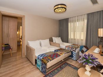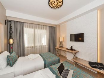 Идеальное расположение- очень близко Айя-София, Топкапы и Голубая мечеть, до ГрандБазаоа минут 10 максимум, до Галатского моста и пристани Эминеню 15 минут пешком. Отель простенький, но комфортный, номер чистый, все работает, матрас удобный, подушка не высокая , каждый день пополняют запас чая и питьевой воды в номере, завтрак- стандартный европейский, не слишком разнообразно, но есть что выбрать, продукты свежие. На рецепции один сотрудник довольно хорошо говорит по- русски, второй - довольно хорошо по- английски, проблем с общением не было. Персонал приветливый, отзывчивый, шустро реагирует на просьбы, дает советы если нужно. Думаю, вернулась бы в этот отель.