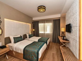 Отличный отель! Еда разнообразная, номер ухоженный, отель удобно располагается по отношению к площади Султанахмет и основным достопримечательностям: до цистерны Базилика 2 мин, до мечети Султанахмет 5 мин, до Топкапы 10 мин, до Айя-София 6 минут, до остановки трамвая 1 мин. Завтрак: яйца варёные, омлет, гренки, огурцы, помидоры, зелень, йогурт, хлопья, джемы и мёд, оливки 4 вида, сыр 5 видов, колбаса 3 вида, хлеб, масло, неплохая кофе машина, каши нет. В номере есть недочёты, но они настолько незначительные, что комфорту не мешают. Слышимость не высокая, никого не слышали, только небольшой шум от вентилятора на улице. Отель в тихой улочке, вида из номера нет. Но и нет шума от баров и машин. Вайфай до 4 этажа неплохо долетал. Для соцсетей более чем достаточно.