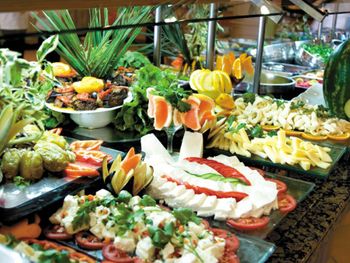 Еда - 9 из 10! Правда, ну только креветок и фондю не хватало, были роллы (не часто) , шашлычки, бургеры (правда в разобранном виде) различные закуски, первые, вторые блюда, фрукты, про десерты можно писать бесконечно! Их там есть) и их было оч много разных!