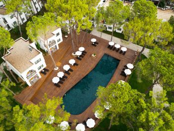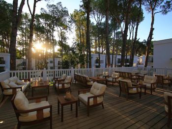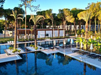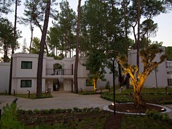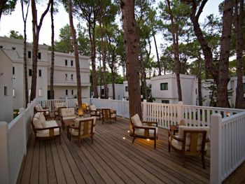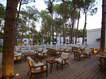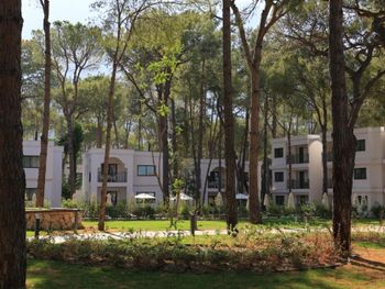 Очень уютная территория отеля. Видно, что при планировании пространства была проведена большая работа. Тишина в номерах, дискотека не мешает отдыху. Много уединенных мест рядом с бассейнами. Сосны добавляют месту прелести. Отзывчивый персонал. Белые небольшие домики просто прекрасны, заодно всегда есть возможность прогуляться по уютным дорожкам.