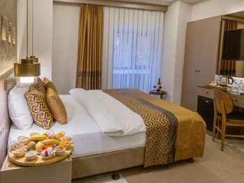 Могу только подтвердить предыдущие хорошие отзывы. Персонал - на своем месте! Приветливые, доброжелательные, профессиональные парни. Чувствуется что их главная задача помочь гостям. Номер - невероятно уютный и комфортный. Бежевые и нюдовые тона интерьера располагают к отдыху. Номер маленький, но при этом в нем есть все! Большая удобная кровать с белоснежным бельём. Кресло у окна со столиком. Шторы плотные, всегда можно устроить ночь если нужно отдохнуть днём. Шумоизоляция окон прекрасная. Телевизор. В номере чайник, посуда. Оставлены чаи и кофе. Утюг. Сейф. Ванная комната сделана под мрамор тоже в бежевых тонах. Фен, зубные щетки, паста и все необходимые мыльно-рыльные есть. Кондиционер не направлен на кровать. Нужная температура номера выставляется без проблем. Местоположение - улочка очень тихая, но стоит буквально завернуть за угол как ты попадаешь в бурлящий и кричащий контрастами Стамбул. Кафе, рестораны, магазины, уличная еда - всё к вашему вниманию. Питание - завтраки очень приличные, разнообразные, питательные и вкусные. Шведский стол. Особое внимание террасе для завтраков. 7 этаж. Вид на пролив, то конечно не Босфор как все пишут))) но это неважно. Красивенно и величественно на горизонте виднеется собор Святой Софии, Голубая Мечеть и замок султана Топкапы. Есть закрытая и открытая терраса. Выделяю Эрдала, встречает гостей к завтраку. Улыбчивый, приветливый, поможет разобраться со всем, принесет напитки. Поёт себе под нос приятным голосом ))) сам того не подозревая создает особый восточный колорит своими напевами))). Подытожим - за три дня конечно не окунешься в Стамбул, очень поверхностно, но если поедем снова в этот загадочный город нескольких эпох естественно же я выберу этот отель. Всем настоятельно рекомендую.
