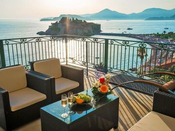 Расположение отличное, вид из окна шикарный. Остров Святой Стефан прям перед вами. Хороший бассейн внутри. Отличный завтрак. Любезный персонал. Около Стефана гулять или купаться или дальше в соседних бухточках - очень красиво.