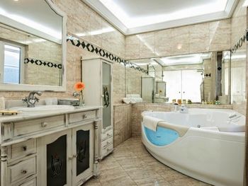 Немного экономно, даже в номере супер-люкс. Не добавляли кофе и чай. Не добавляли шампунь и гель для ванны. Не во все часы шла горячая вода. Утром и ночью вода была тёплой. Питьевую воду приходилось покупать. Чтобы добраться до лифта нужно подняться на первый этаж.