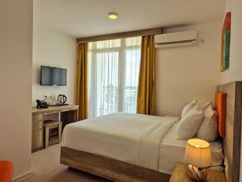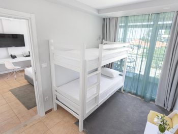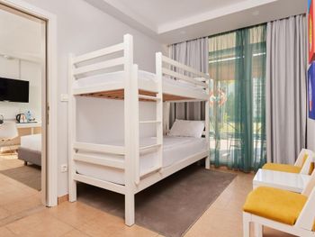 1.Жуткие номера(плесень), было неприятно находиться, везде грязь, стаканы оставили нам грязные, в номере не было элементарных косметических средств,только мыло в душе.. Меня состояние номера повергло в шок. Я не говорю даже про то, что номер явно требовал ремонта на фото видно , элементарно плесень на коврике , везде по углам... В номере был бассейн, тоже с жутим жёлтым налетом... В нашем бассейне не работало освещение, попросили сделать, сказали разберёмся , так никто за 2 дня не пришёл . Ещё какие- то железки торчат в нашем номере на территории бассейна, жуть полная, видимо для того чтобы ребёнок травмировался, и это в семейном отеле(!) У ребёнка лампа освещения в двухярусной кроватке была сломана Муж предлагал уже на первые сутки уехать, я настояла остаться, но пожалела потом, от плесени мы после поездки чувствуем себя плохо.. 2.Мало дестких развлечений. Сломанный детский бассейн ради которого ехал мой ребёнок , он выбирал по фото отель именно с классным бассейном, так вот весь отдых отвлекали его от того что ни крокодил, ни дельфин не работают... ( о чем не предупредили при бронировании, на сайте тоже не было это информации) самое забавное, что когда спрашиваешь на ресепшен, говорят завтра будет работать, наступает завтра и также все стоит. Бассейн просто перетянут красной лентой и за 2 дня к нему никто из рабочих не подходил. Если не работает бассейн для развлечений,сделайте больше других вариантов для детей, так вот на пляже у них в собранном виде стояла резиновая аква горка, так она тоже не работала, а это в самый сезон(23-24 июня!) Грязная пыльная валялась на пляже... 3.Очень долгая регистрация, 40 минут на ресепшене я доказывала что не дурак? и действительно бронирование есть, я сразу же им показала пин код букинга, но дальше началось невероятное , меня возмутило что в таком месте персонал куда-то убегал и что-то уточнял по моему бронированию, в итоге сменился третий сотрудник который начал регистрацию... 4.