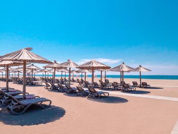 Отдыхали в отеле в конце июля - начале августа 2024. Заселение в 15:00, чекаут в 10:00. Мы приехали в районе 12 часов из аэропорта, нам предложили оставить вещи, оформили в отеле, надели браслеты и предложили пойти пообедать в их ресторане и пользоваться всеми благами отеля. В 15:00 нас заселили в премиум блок. Отель и номер нам очень понравились, есть абсолютно всё для отдыха и проживания, можно пользоваться минибаром, всё пополняется раз в 3 дня, есть чайник, кофемашина и чашки/стаканы/чай/кофе прямо в номере. Внизу сидит администратор Султана, очень приятная девушка, которая знает много языков и любому может помочь в решении любых вопросов, начиная от необходимости что-то принести в номер до совета, как лучше поехать в другой город и что там посетить. У отеля очень большая ухоженная территория со множеством бассейнов. Персонал очень заботится о чистоте и комфорте для отдыхающих. Пляж находится на первой пляжной линии, т.е. сразу при выходе из зоны бассейнов. Пляж песчаный и дно моря тоже песчаное, мелкое, нужно пройти достаточно далеко, чтобы стало глубоко. Нам не очень повезло в первые дни с морем, т.к. из-за холодного течения вода в море была прохладной. Но впоследствии вода уже была теплая. У отеля есть один основной ресторан (со шведским столом) и несколько дополнительных. Мы не посещали другие рестораны, но в основном ресторане нас устроили абсолютно всё. Был большой выбор блюд мясных блюд (курица, индейка, телятина, говядина, свинина). Огромный выбор разнообразной рыбы и морепродуктов. Много спелых овощей и фруктов, всё очень вкусно. Есть большой выбор кондитерских изделий на десерт, тоже всё очень вкусное. Напитки на любой вкус, как алкогольные, так и безалкогольные. Еды и столиков в ресторане хватает на всех, а также персонала очень много, который убирает использованную посуду и следит за чистотой в зале. В целом, нам очень понравился наш отдых. Будем рады, если кому-то поможет наш отзыв.