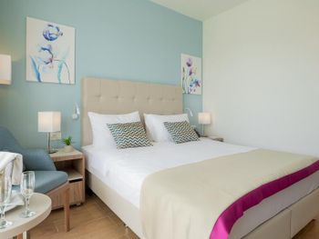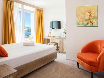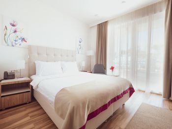 Курортный отель, таких немного в Черногории. Хороший сервис , много бассейнов, хорошая территория, отличный пляж. Номер у кромки бассейна порадовал. Очень приятно выйти на террасу и окунуться в бассейн. Нам повысили ,при заезде категорию на премиум. И все напитки и еда были прямо у нашего бассейна. Сам ресторан у бассейна на завтрак и обед понравился, но на ужин нет. У меня был день рождения и мы выбрали его , что бы отметить. Нам любезно предоставили бронь на 20-30, но готовили час ( и когда принесли стейк это было разочарование, он был резиновый. Так как ресторан рассчитан на небольшую посадку, мы не смогли заказать тако с мясом , его уже не было. А креветки я не люблю. В результате я выпила коктейль и осталась голодной) все остальные точки ,уже были закрыты. День рождения не удался)Возможно это просто не повезло мне, по этому я не снизила оценку за это. В целом все прошло ,хорошо. Матрас и подушка удобные. Номер с прозрачной перегородкой, которая разделяет его на две зоны для сна. Ночью было тихо. В основном ресторане большой выбор еды, без изысков, но порадовало большое количество фруктов! Каждый найдет, что поесть. Дочка брала мороженое и фрукты прямо в корпусе, где мы жили. Рекомендую отдых в этом отеле.