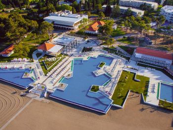 Из минусов: один из баров не работал, волейбольная сетка была натянута лишь в последний день нашего пребывания(17 июня), надувные водные горки стояли без дела всё это время(очень жаль), бассейн для водного поло также пустовал, полотенца для пляжа на момент нашего размещения выдавались на рецепции, в карте отеля отсутствовали обозначения объектов(ее смысл немного терялся от этого), веревочный парк был закрыт.