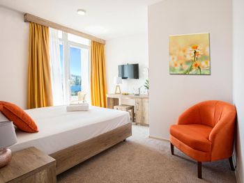 Свой чистый пляж, большая зелёная территория, прекрасное море и вид на горы. Номер был отличный.