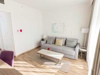 Из минусов: НОМЕР! Бронировали двухкомнатный люкс, но он даже на стандарт не тянул - все какое-то сломанное, перегоревшие лампочки в светильниках, сломанная дверь на балкон, которая постоянно открывалась на верхнее проветривание, под конец вышла из строя система центрального кондиционирования, отель не удосужился хоть как-то это прокомментировать, первые несколько дней рядом с нашим корпусом Абрикос был невыносимый запах канализации, отель также не отреагировал, в самом номере старый ремонт, очень грязно. На протяжении 2 недель ни разу не было хотя бы легкой влажной уборки. Территория не ухоженная, нет обычной детской площадки. Отель никак не тянет на 4*. Не рекомендую, фото номеров не соответствуют действительности.