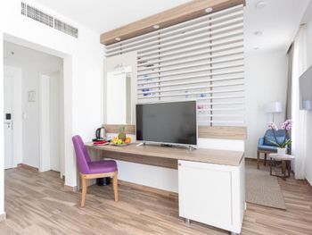 Хороший номер, удобная кровать, просторный и светлый номер. Присутствует минибар который включен в стоимость. Персонал каждый день убирает номер(но есть нюансы, то что убирают это не значит, что помыли пол или поменяли постель). Хороший пляж и удобства на пляже, так же на теретории есть много бассейнов. В целом нам понравилось все