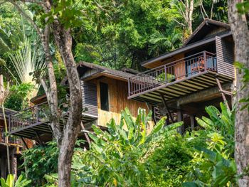 отель находится на склоне в джунглях, очень красивое размещение! эстетически очень приятно находится в таком месте и это все перекрывает,