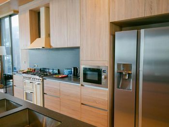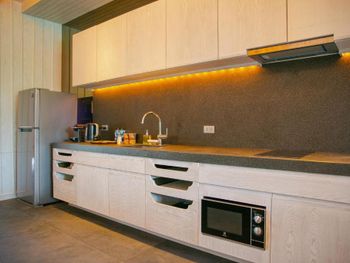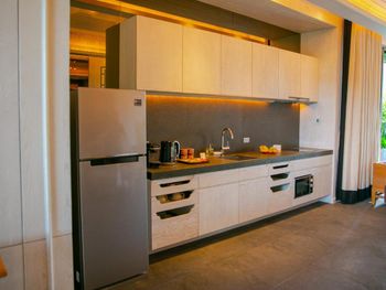 В некоторых номерах также имеется кухня с холодильником, посудомоечной машиной и духовкой.
