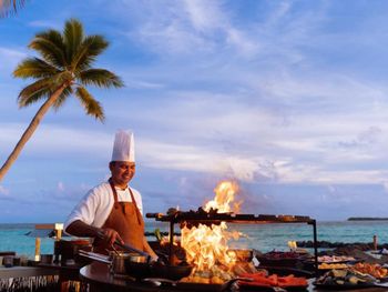 Гостям Baglioni Resort Maldives - Luxury All Inclusive предоставляется завтрак «шведский стол». При Baglioni Resort Maldives - Luxury All Inclusive работает ресторан, где подают блюда итальянской кухни, блюда японской кухни и суши. Гости могут попросить приготовить вегетарианские, безлактозные и халяльные блюда.